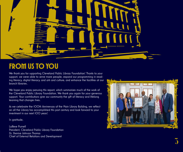 The goal for this project was to redesign the Cleveland Public Library Foundation's Annual report and produce it into a booklet.